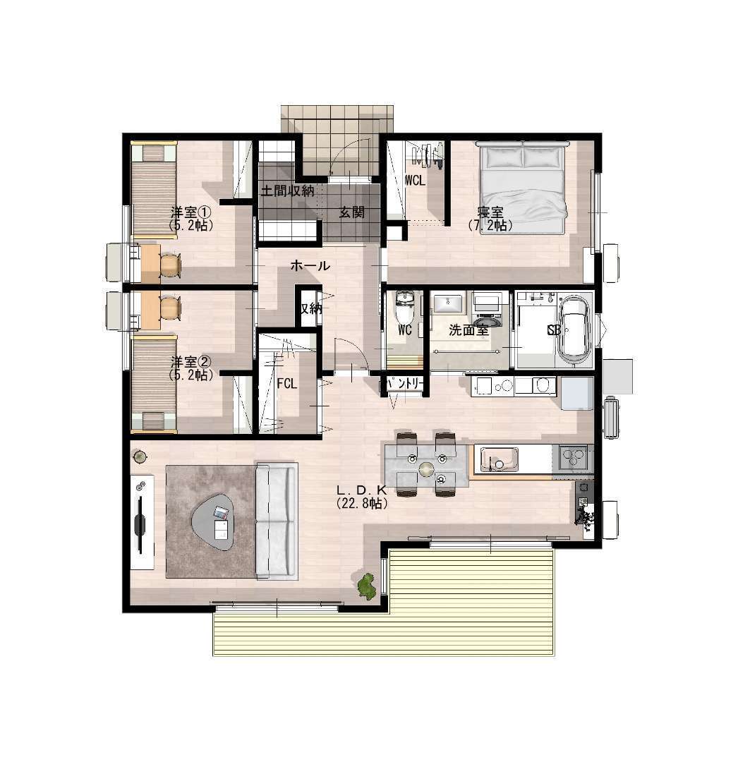 間 取 :3LDK+土間収納+WCL+FCL
